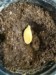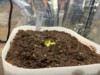 These seeds I didn't need to peak at. 198.5 Crews (202.5 Crews x self) However the chosen one is coming up with the seed. I piled some dirt around it and stuck it under the light.