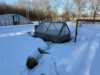 Here we go! Yesterday was -20 but today was only -5 C so I was more motivated to put out the shacks. This is the melon patch and there is a lot of snow.