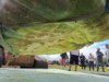 Maybe our 150 Challenge plant would of made it through todays 96F heat, but I decided to put up the 30% sunblock netting rather than take the risk of burnt leaves. The fencing fixed the problem in about 30 minutes. See 2nd photo. I got 3 pumpkins showing on the main. One was pollinated today at 13 ft. See resdults after 30 minutes on the next diary post.
