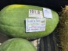 These were the two melons I brought to the Durham fair. They are Tom Watson crosses. They are pictured next to 2 30 pound jubilee melons Final measurements on the long melon 57 inches end to end, 38 inches side to side and 91 inch circumference for a total of 186 inches. on the black melon end to end was 53 inches, side to side was 39 inches and the circumference is 82 inches for a total of 174