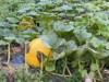 This Pumpkin is on my son Ethan's 2147 Marshall that got yellow vine disease back in July. Wow this plant has Numerous pumpkins. The majority have aborted but a few have stuck,,,,,probably they are on unaffected sections of vine. Where the vascular system isn't plugged up from the yellow vine