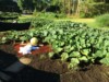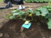 |  | As you can see the second pumpkin was culled, I removed the side vine right at the pumpkin and the one right after the pumpkin.  In my opinion these vines must always go as they get in the way when the pumpkin gets bigger.  We remove them right away and train other vines to fill the space, creating much needed space and air flow around the pumpkin.  The main vine is swung back as far as it will go  removing a few of the inside side vines) The area is then raked out to be as level as possible, removing any stones.  We will now grow every other side vine off of the main vine until all space is full (1,000 sq ft). |