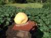 |  | Paps 2009:  One of the best shape pumpkins we have ever grown. All plants have now totally filled 1,050 sq ft. Only a single vine is left to run. |
