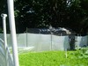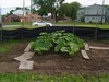 This is the garden as seen from my neighbors, with The Bates Motel in background... If you squint really hard and use a lot of imagination you can see a little plant in cold frame...