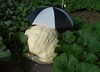 You have to look close, but if you look toward the bottom of the image you can see what looks like white dots on the vine. This is the hail damage, but then as you work your way up the vine, and you get past the leaf node, you will notice a normal looking vine which continues all the way to the pumpkin. The reason for this line of damage and no damage is the undamaged portion was under the umbrella that took the brunt the hail and saved the vine and also the baby pumpkin (for the most part). Yes, the umbrella needs to be replaced but at least it looks like the actual pumpkin is showing minimal signs of damage.
