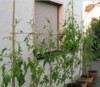 Here a giant Sunflower on that i removed again and again the leafes so that the pumpkin plant will get more sunlight.