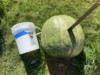 Another shot of the 201� OTT watermelon. The melon is on the ground and so is the Rubbermaid trash can