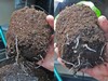 Today I transferred seedlings to 2 gallon pots. Here is a look at the root systems after 9 days (from initial seed soak)in a 5 in. peat pot. I was able to remove the pots without any visible damage to the delicate roots. My notes from previous years say that 8 days in a 5 in. peat pot is the ideal time to up pot.