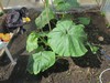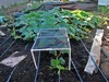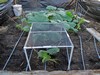 The greenhouses are just shy of 6x8 feet. I removed the plastic from most this morning. Reluctant to remove the greenhouses just yet given our iffy weather pattern. So will leave them in place to provide some wind and shade protection and let the plants grow out. Here the 2145 is growing nicely. Removed the pumpkin from the tip. Waiting for a warm afternoon to bury vines and do some cleanup.