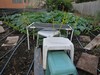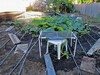Here you see my weeding assistant having a snack after weeding the 2009 this morning. As you can see the monkey is trained to sit on the walkboards.
