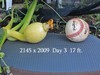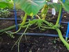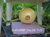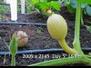 The 2009 plant is a very nice healthy plant but has not given me any (attractive) option except this one female at 16 feet on the main vine. 5 days is early to declare victory but the fruit has that nice look to it.