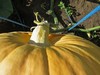 Today I waited for 85 degrees+ and tugged for the third time on the 2009 pumpkin to move it out about 3 inches. I think the stem stress is relieved. You can see some nice color developing.
