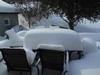 snow is almost up to the bottom of the table.
