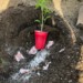 Not bad...should be planted a little deeper but they�ll be aiight...yup, nice little ring around plant to catch the fooded water...nice lambchop....the Missus is officially growing...