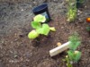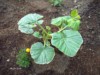 Peanut pumpkin - treating for SVB damage. I was able to save main vine fruits, but still noticing a few issues. Corn/weeds beyond removed on 08.02.2016. In background my 1049 Swain covered with blue wet towel.
