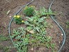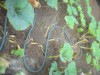 1623.5 Wallace plant truck'n along. Today, I foliar fed Biomin Calcium, buried vines, staked vines in place, and removed male buds. Big storm this morning, so I tried to finish up and rearrange irrigation hose. Plot is now more tilled and ready for growing vines. Need to bury vines on the 1049 Swain! Removed a female found 3'from base.