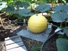 This is supposed to be a marrow, but I am questioning if this is a cross with a pumpkin. She is aborting all other siblings on the plant and daily increasing in size.