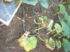 Wallace plant still struggling to survive. Heading down the main vine. Infected leaves removed days ago and more are dying.