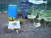 Fruit is under the shade shelter which I plan to extend tonight. Water container to left and hose for irrigation runs along soil under vine.