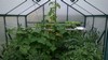 Picture of the greenhouse with hot petter, eating cucumbers (the two in the middle are giant cucumbers, but don`t think I will let them get this big, maybe one later in the Season...) eating tomatoes. Planted much to much in this small greenhouse lol... we`ll see how this develops...