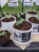 It has been well below freezing the last 4 nights and is predicted to continue cold for a little while so I followed Dale Marshall's lead and repotted my best plants into bigger, bottomless pots. I cut the bottom off a 10 liter bucket and put a board underneath. The leading seeds are as follow:
