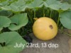 Officially 20 dap, 140 Ott, 56 in cir yesterday, seems to imply a 70ish lb pumpkin. We've got a 4 day camping trip next week, it'll be interesting to see what we come back to!