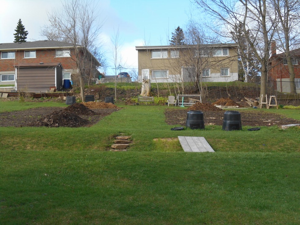 time to get to work.. The compost pile top left I will move to to mt stash pile. the rest will be spread and tilled. Yes I open all my compost bins when it rains..May 4