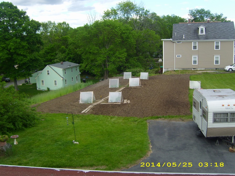 Garden is almost finished.. Still have to till a bit more on the bottom of the hill closest to camera. Have a spare plant I will grow 4 or 5 pumpkins on for carvers and a drop if all goes right.. This has been an up to the minute update, stay tuned for more..