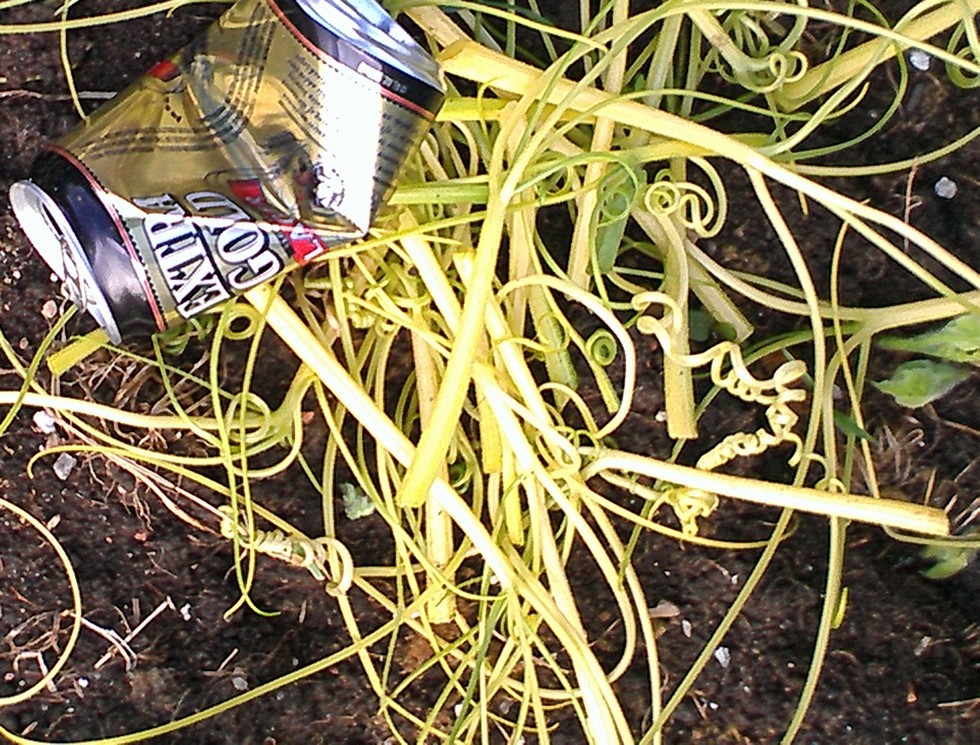 One thing that had to go waZ the tendrilZ....I tried to leave them on, but they go find the sprinkler headZ and wrap them up. They also make it harder to bury and hold the vine higher off the ground... So I went back to Plan A