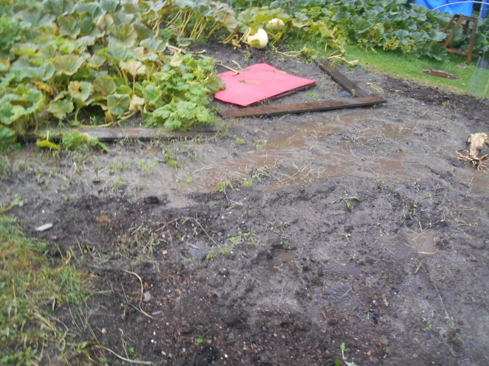 This is where my 1387 Hopkins was.. And it was doing great. After I pulled the 1320 Aasman plant I could really see what was going on .. Both pumpkins split in this patch..