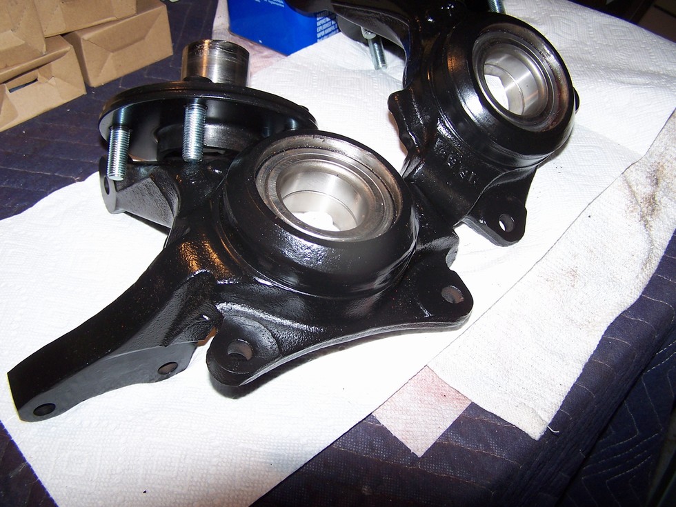 finished paint on the steering knuckles . pressed the wheel bearings in, still need to press the wheel hubs in and install the new inner and outer seals, installed all new lugs. the fun continues...
