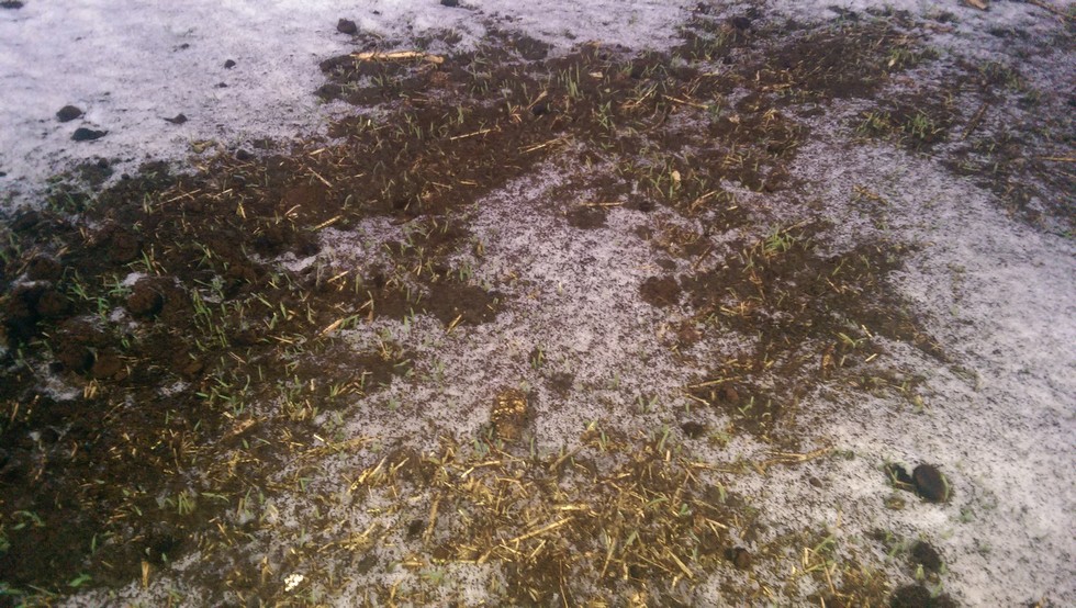 ItZ melting...and the Rye planted in November 2014 is growing under the snow...Spiked with