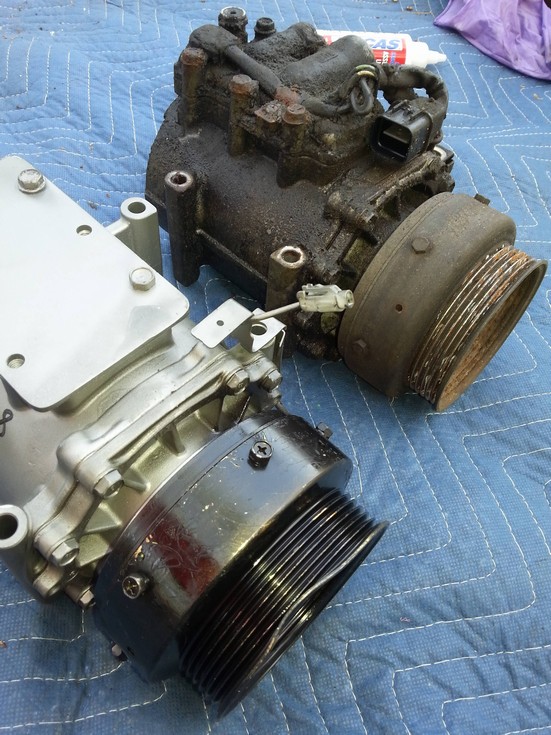 new a/c compressor had dented pulley, uggggg. painted the old one ,.