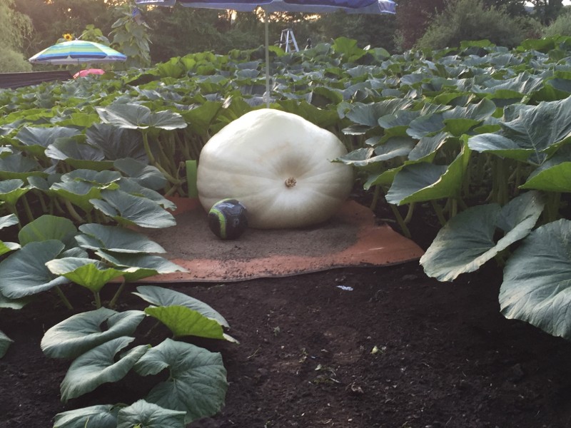 2009 Wallace x self. Day 18. This pumpkin is 21 feet out and has a very healthy plant behind it.