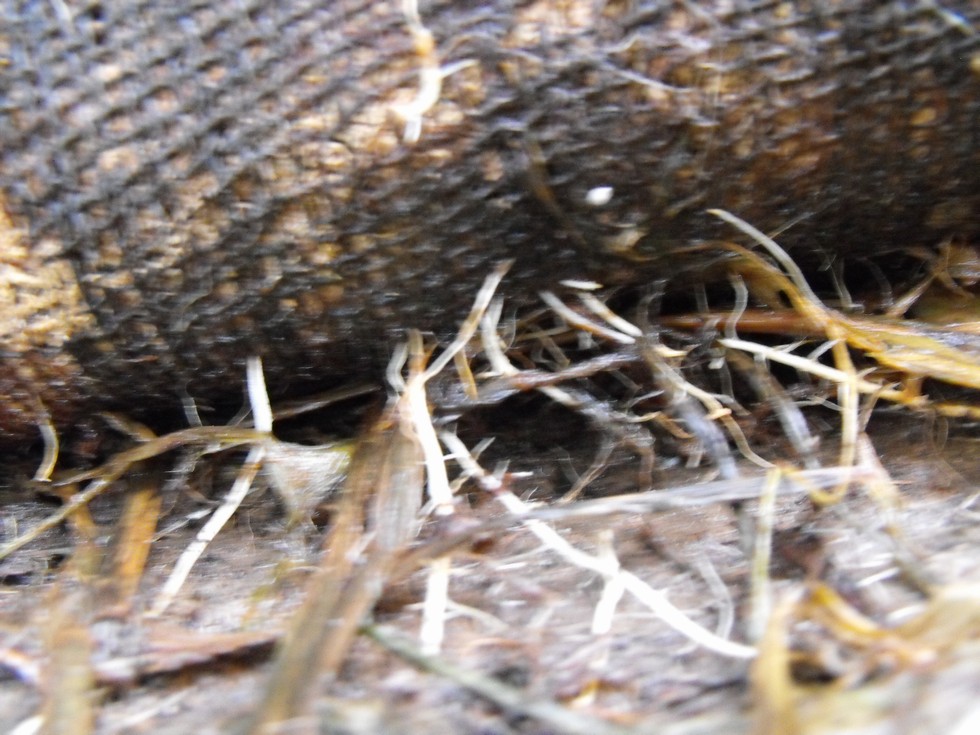 Root systems are great under the carpet layer. Not only have the taproots gone thru the carpet, the entire root system appears normal down into the subsoil area and thriving not choked from a lack of air like I thought they would be. I thought I would smell a musty anaroebic smell but quit thee opposite, it smells clear and earthy not moldy and sweet. This is one heck of a weed barrier and I guess like I thought thee old style 1950's-60's heavy burlap weave allows air to get under and through it. The melons are putting on weight so I guess time will really tell.