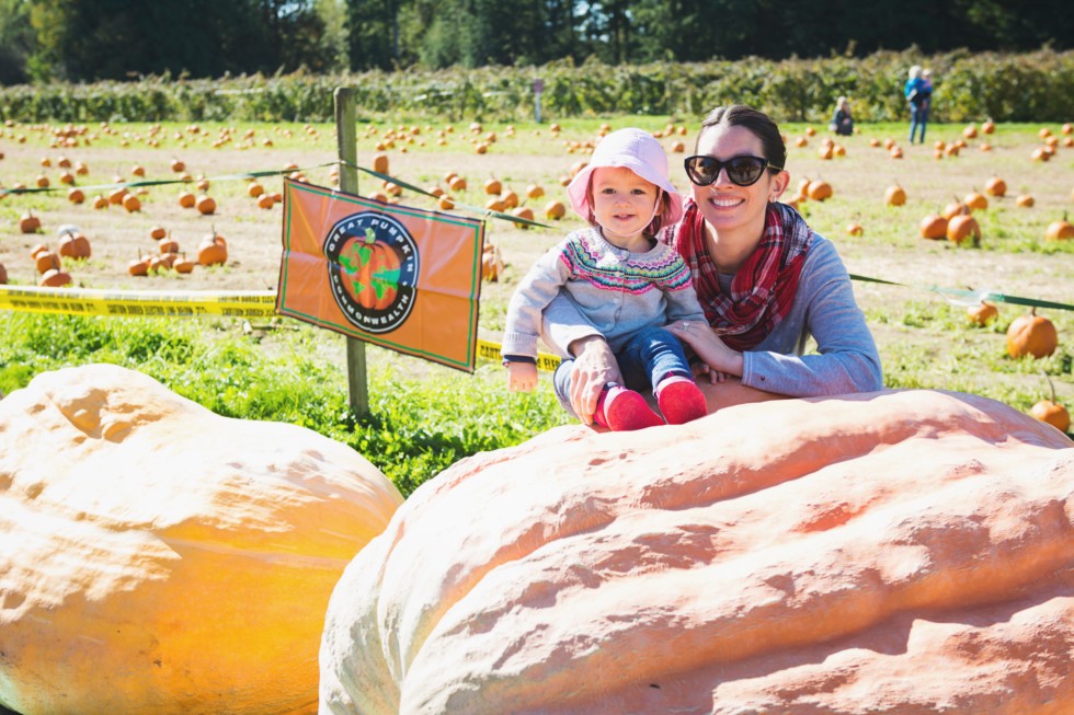 Picture of my winning pumpkin at Krause Berry Farms. My Wife and daughter in the pic.