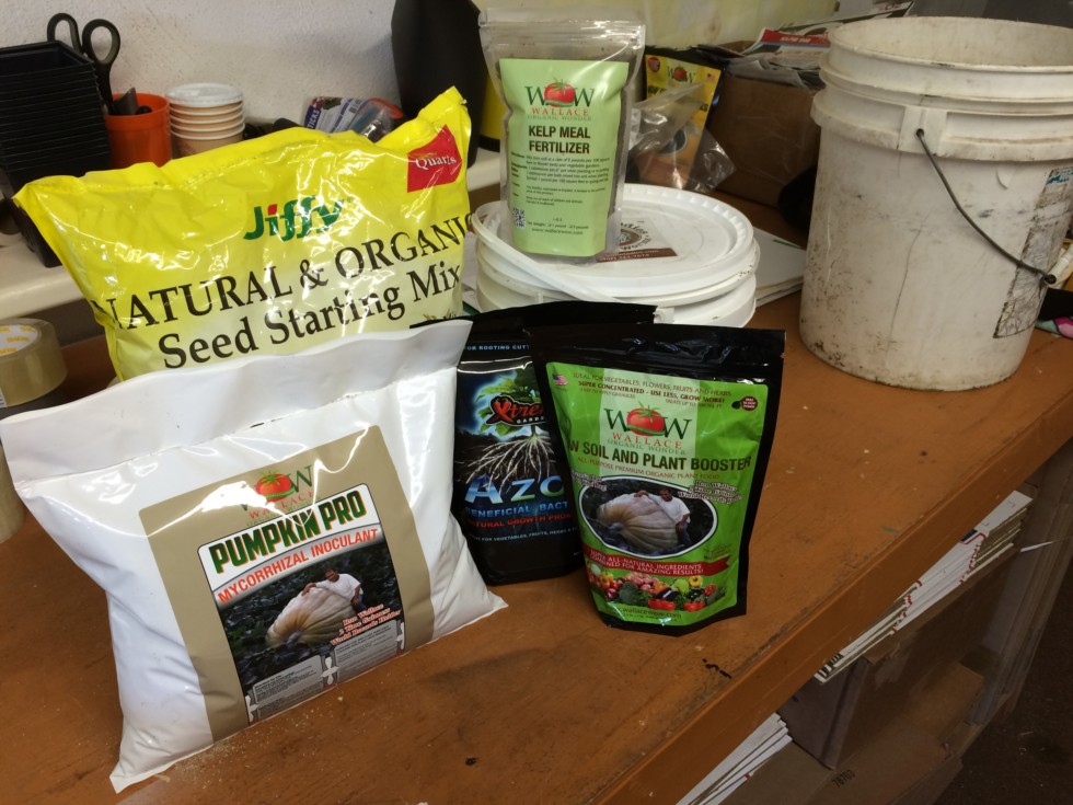 | Fired up the germinating box for some "test" germination's.  I always like to make sure the system is down pat before planting. There are many ways to start seeds and most of them all work. I first make my seed starting mixture with the products shown and then fill pots and place in germination chamber 24 hours before seeds go in.  This gives the soil plenty of time to warm up.  Our germination box is very simply using a plastic tub, 3 - 60 wt light bulbs, and Plexiglas top.  Temperature is kept between 85-90 degrees. |  |  |