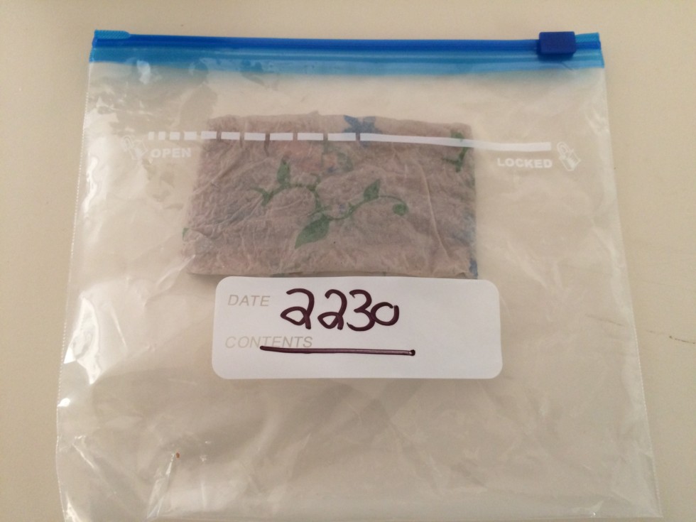 | After soaking for 1- hour Seeds are placed in a moist napkin ( using seaweed / humic mixture ) and placed in a labeled zip lock bag.  They will be placed in the germination box for 12 hours. |  |  |