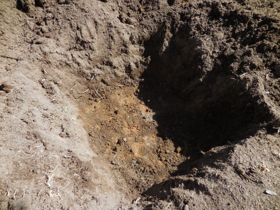 Started preparing planting holes and getting the greenhouses up. Frost this morning and 62 degrees this afternoon. First thing to do is dig down to the clay layer.