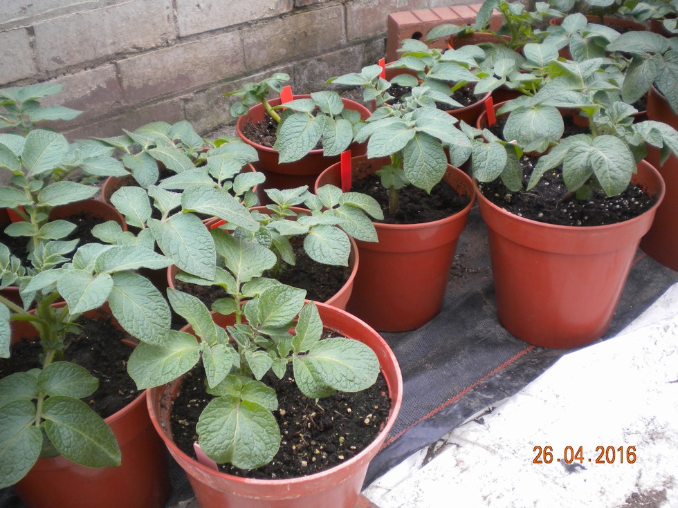 Potatoes starting to grow but having to keep them in the greenhouse for now.