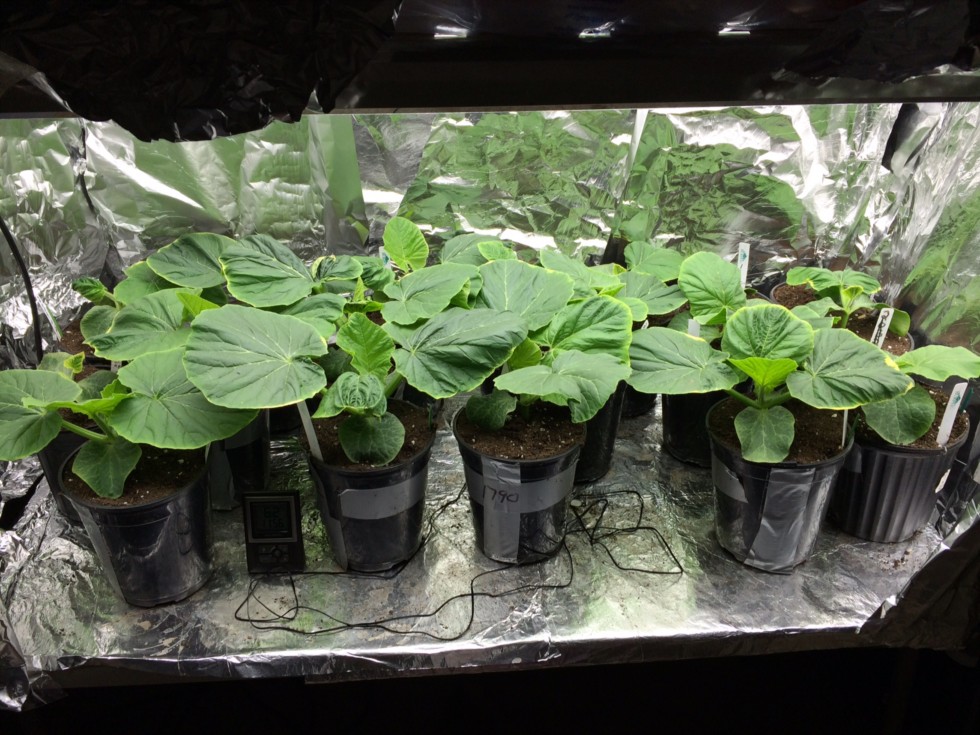 | Most plants are ready to go, we have been exposing them to cooler temperatures at night to harden them off.  Once again I am very impressed with the T-5 system, it grows the plants short and stocky. |  |  |