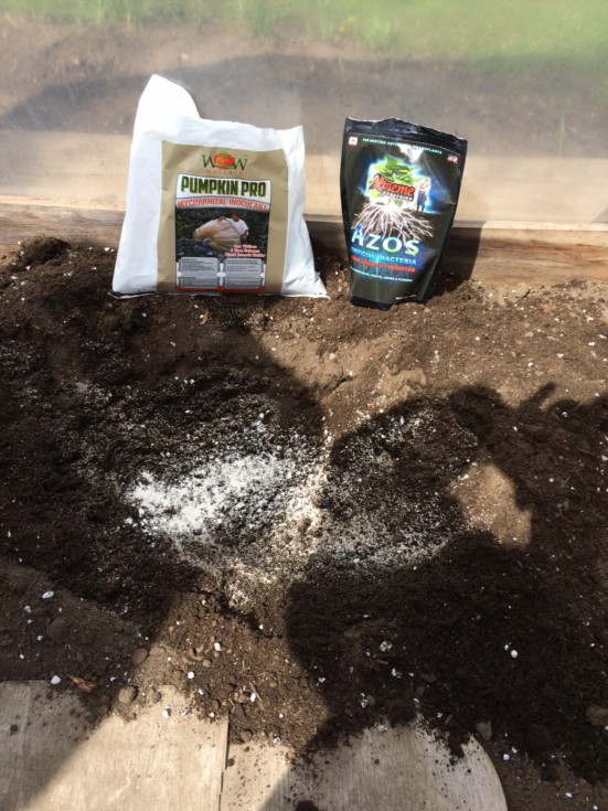 This past weekend was transplanting time. I always start with Pumpkin Pro and Azos. We also add the same mixture (Potting soil, and vermiculite) to the planting hole. Plants were then watered with Humic / Fulvic Acid, Seaweed, Root, Essential and Companion.