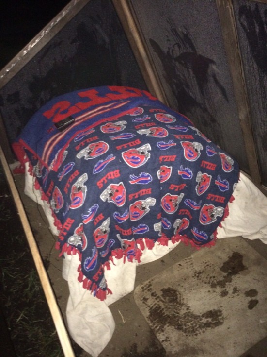 | Here is what it looks like when covered at night.  Second night in the ground it got down to 30 degrees. |  |  |