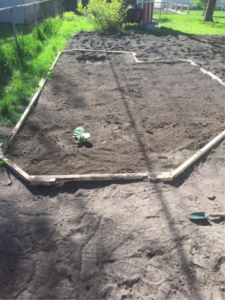150 Sq foot contest- The1714 L�ders went into the ground today. I rotated the boundaries by 90 degrees before transplant. It should allow more sunshine for the 150 plant and it also make it easier to utilize the rest of the patch space.Maybe I might be too optimistic...I needed some soil for a raised bed for an outdoor carrot. Perfect source was where i wanted a sandpit for the huge 150 pumpkin to grow on. Hopefully can hit the bullseye pollination spot.