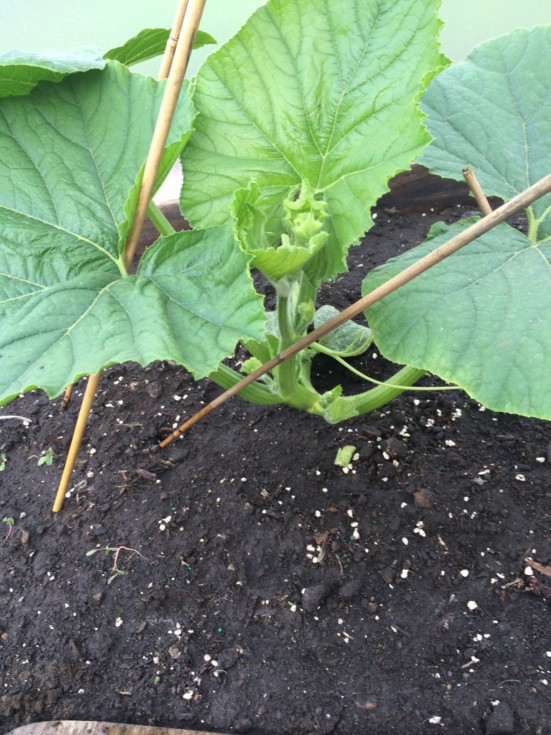 | 2230 getting ready to lay down.  As you can see we brace the plant with a few bamboo stakes, the one placed below the main vine will be moved daily to make sure the main vine does not try and drop too much in one day. |  |  |