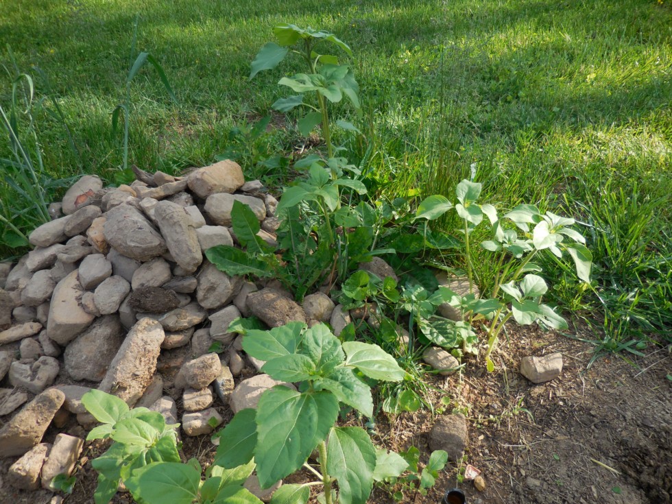 Volunteer sunflowers popping up everywhere as usual. Supposed to be 39 degrees here tonight and those temps do not faze the sunflowers ever.