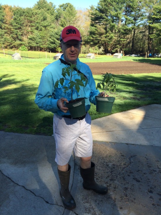 | Early morning visit from Steve Connolly.  Steve dropped off some Mega Marv and McCoy tomato plants for me to grow this year.  Not much to report in the patch as growth has been slow so far. I'll have pictures up hopefully for this weekend. |  |  |