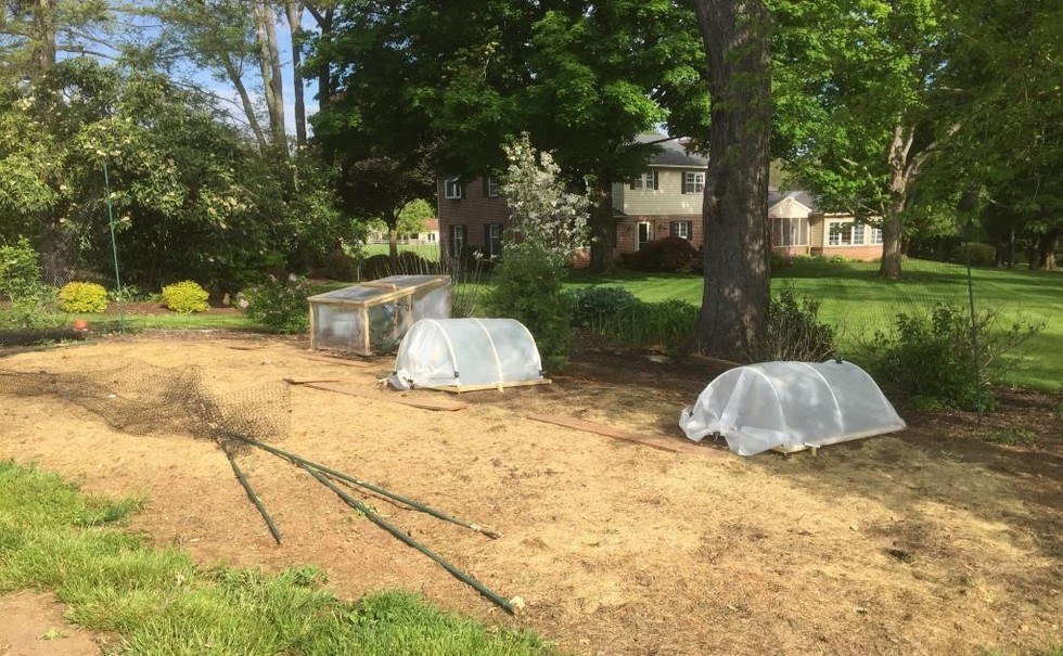 2 days of sun!! In a row!! 74 deg today. That oughta get the juices flowin'. Rototilled all the grass clippings collected over the last month into the patch. Media looks great. No visible problems with any of the team at this point. The 1969 Haist continues to look the best (frame #2). Spaghetti squash trying to make a break for it out from under the big frame #1.