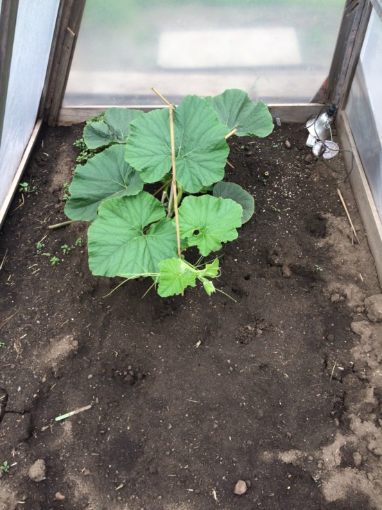 | Took some photos on Saturday, getting a nice stretch of weather this week as we will be 80 degrees for several days. Over the last few days the plants have really starting to grow quickly. Plant in photo is 2008 Neptune, I culled a 2009 that was planted next to it.  The 2008 was started a week later and went in the ground 8 days later and it was just outgrowing the 2009 by leaps and bounds.  This is the main reason we double plant, does not matter what seed it is, if there is another one doing much better, that will be the "chosen one". |  |  |
