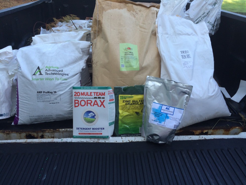 Added soil amendments today, removed green houses, tilled and put up wind fences. To 5,000 sq ft we added the following: 75 pounds Kelp Meal, 20 pounds Humic / Fulvic Acid, 25 pounds 0-0-50, 30 pounds K Mag, 25 pounds Sul - Po - Mag, 24 ounces Borax, 2 pounds Manganese Sulfate, 2 pound Zinc Sulfate and 1 pound Copper Sulfate.